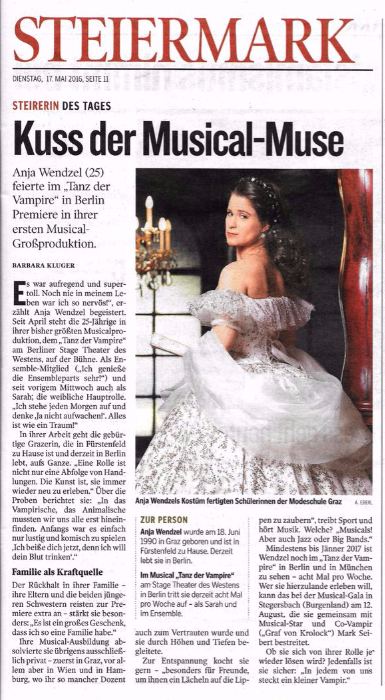 Berichte von Zeitungen und Magazinen bzw. in Musical-Blogs über mich, meine Engagements und meine Arbeit finden Sie in der LINKEN Menüzeile.